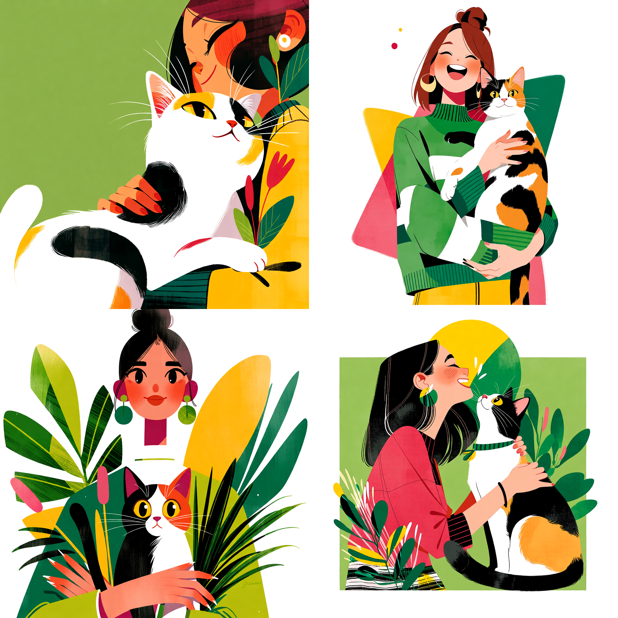 プロンプト1girl with a cat --ar 1:1 --sref 1117253513 --niji 7