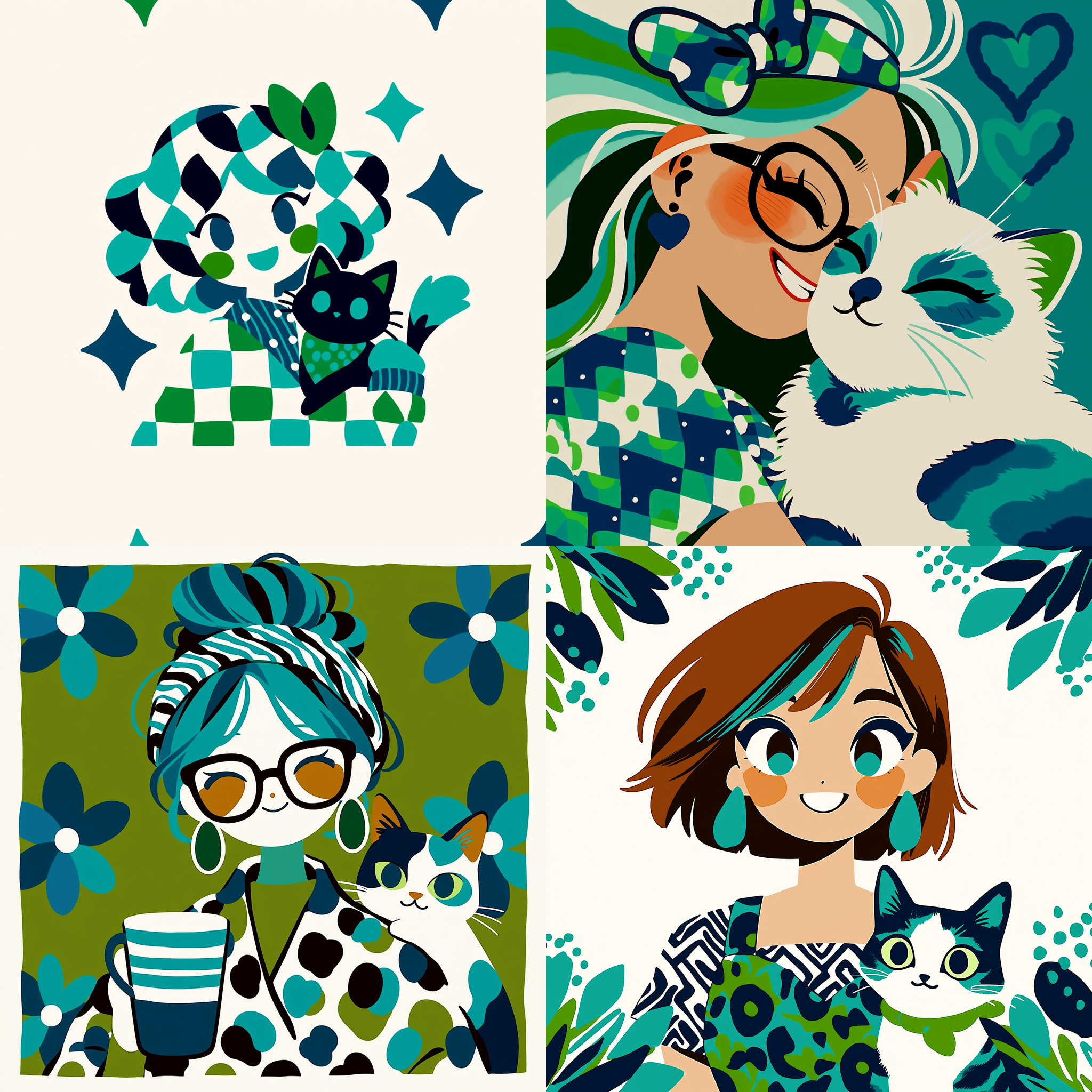 青緑系のモダンな幾何学フラットイラスト。