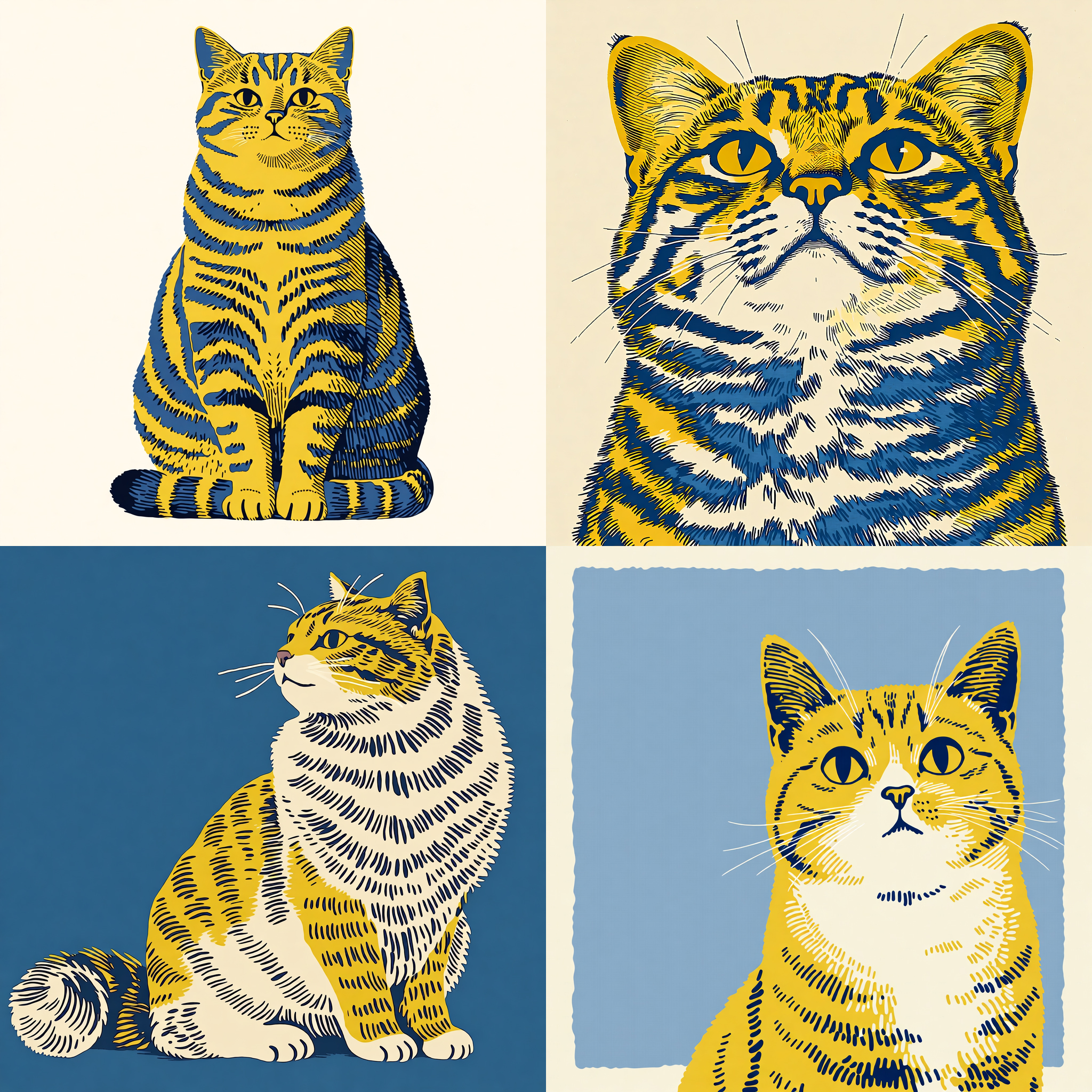 青と黄色の組み合わせの版画風。
