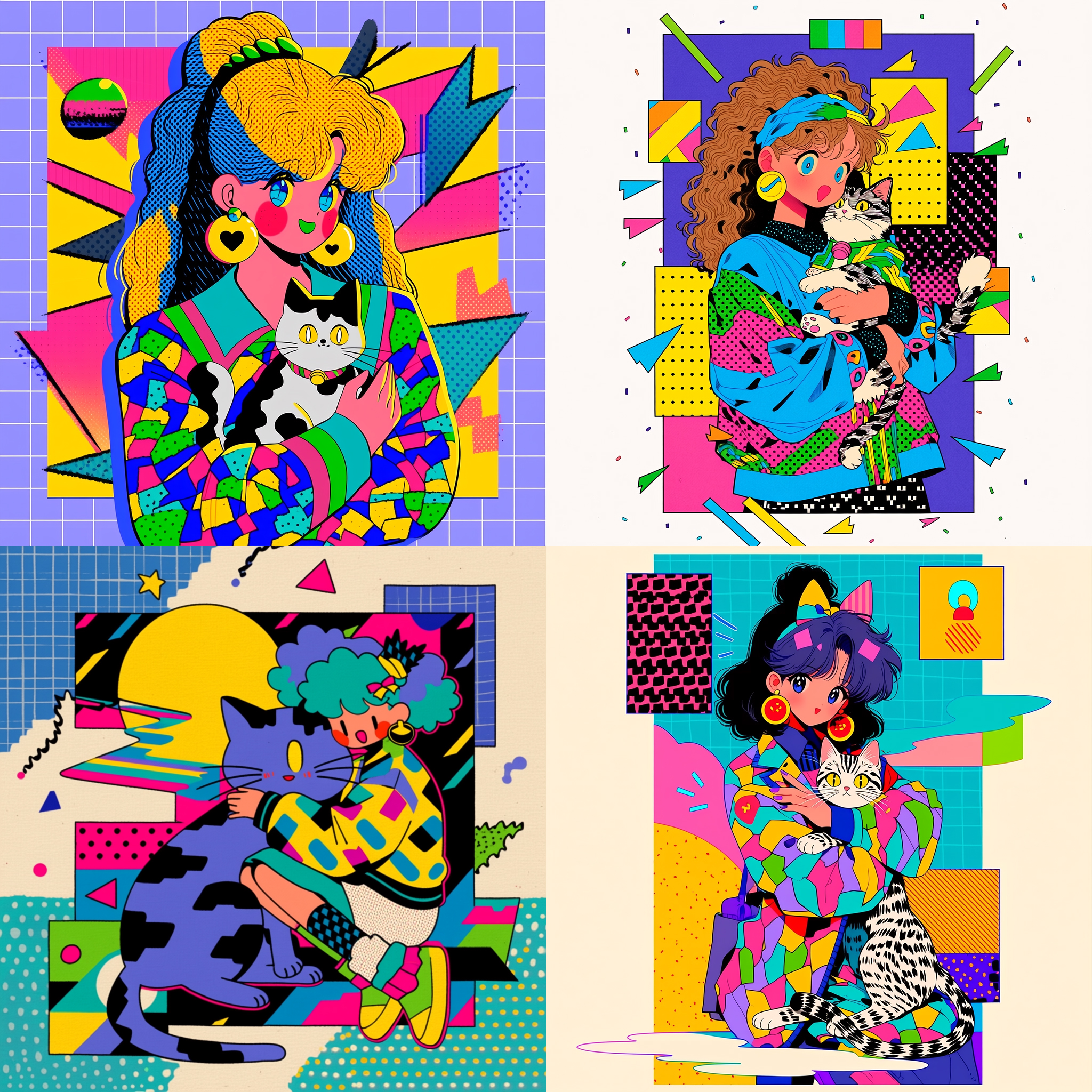 | スタイルの雰囲気 | べた塗, コラージュ, レインボー, 昭和風, 躍動感, カラフル, アニメ, かわいい, ポップ, レトロ, セルルック, ビビッドカラー, 洋風, 文様・幾何学模様 |