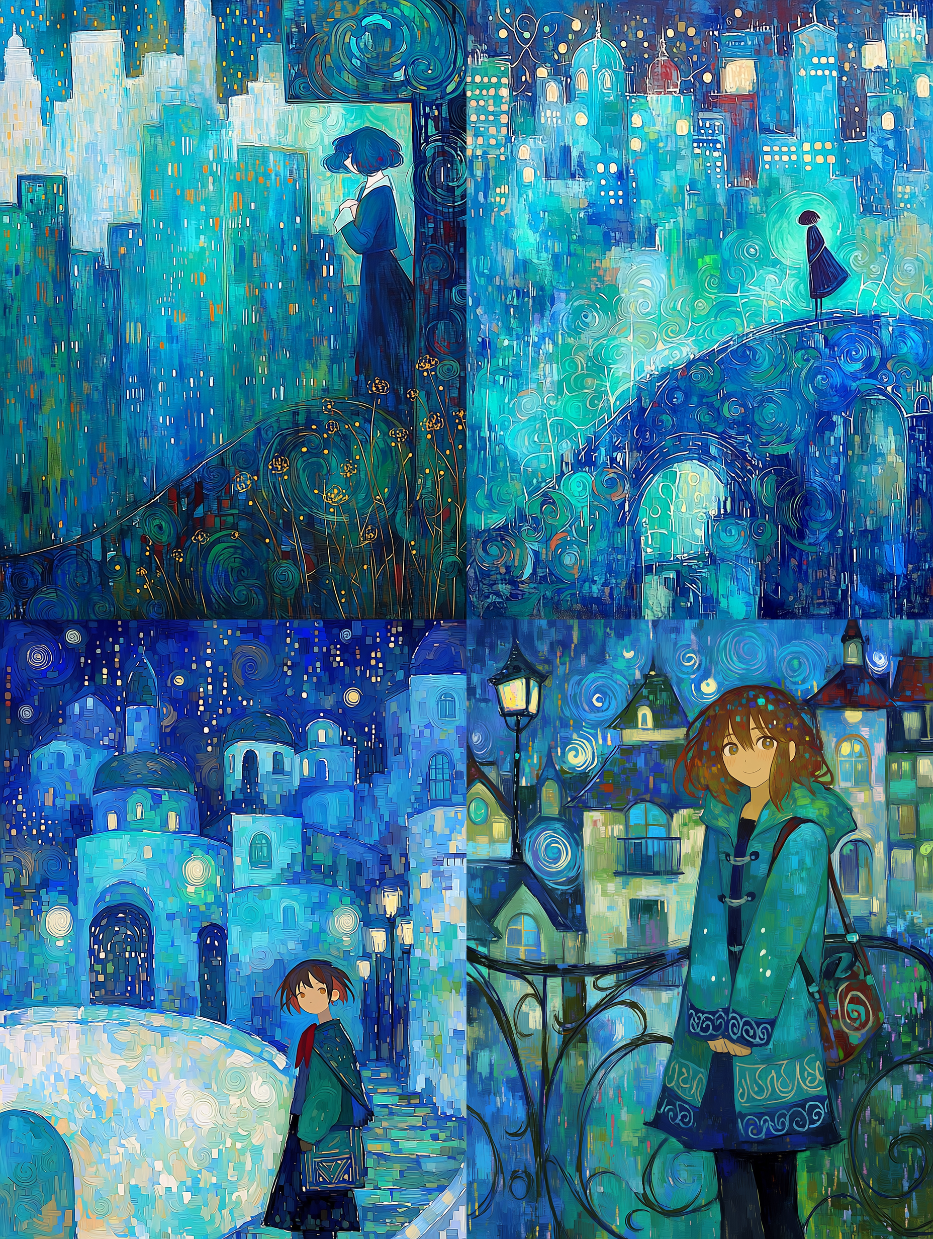 ややゴッホ風の絵画の雰囲気が感じられる、油絵風イラストスタイル。