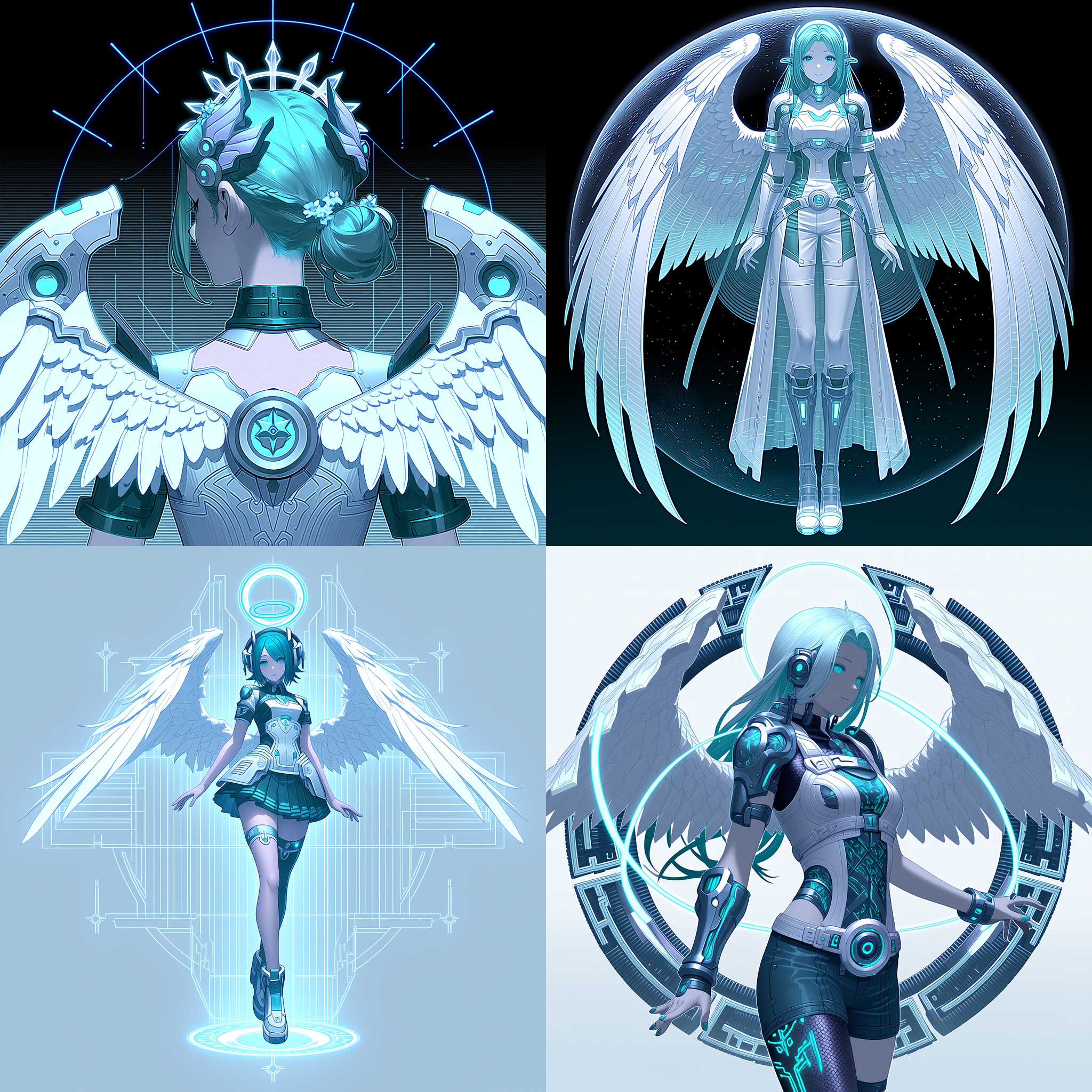 ビビッドに発光するシアン(水色)が特徴のSFサイバースタイル。やや3D風。