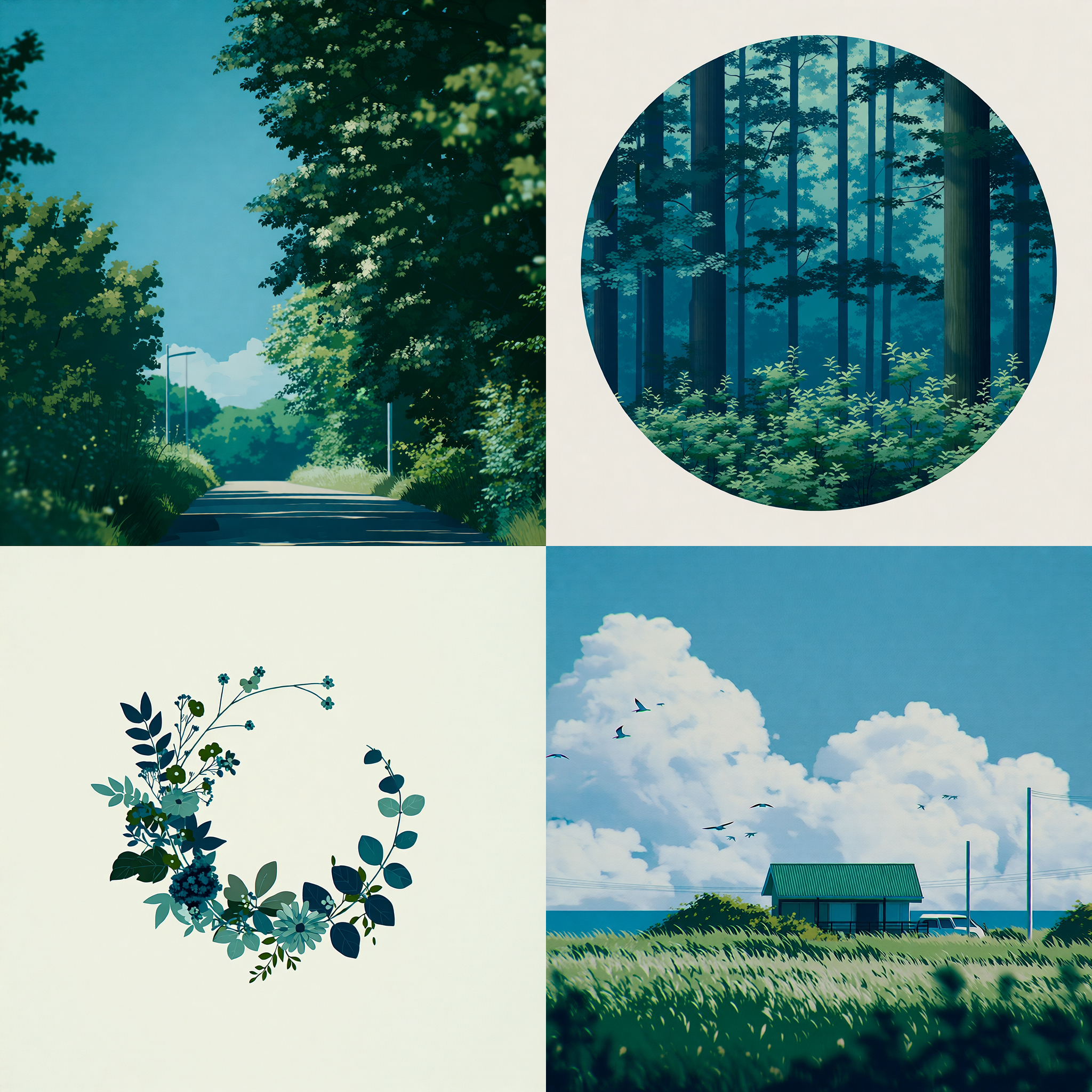 青緑系の色彩が中心のスタイル。風景の描写に向く。