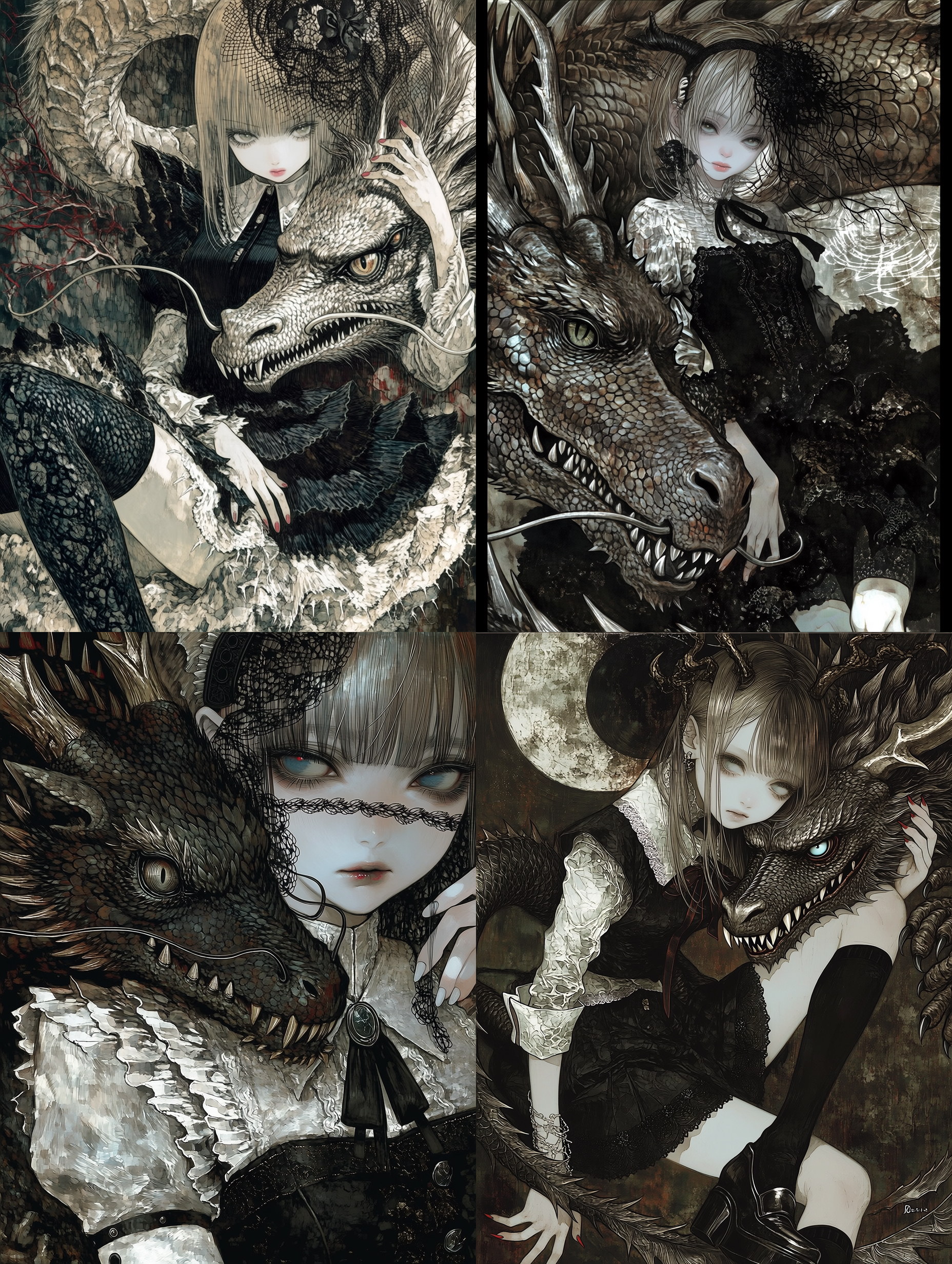 非常に緻密なゴシック系ダークファンタジースタイル。