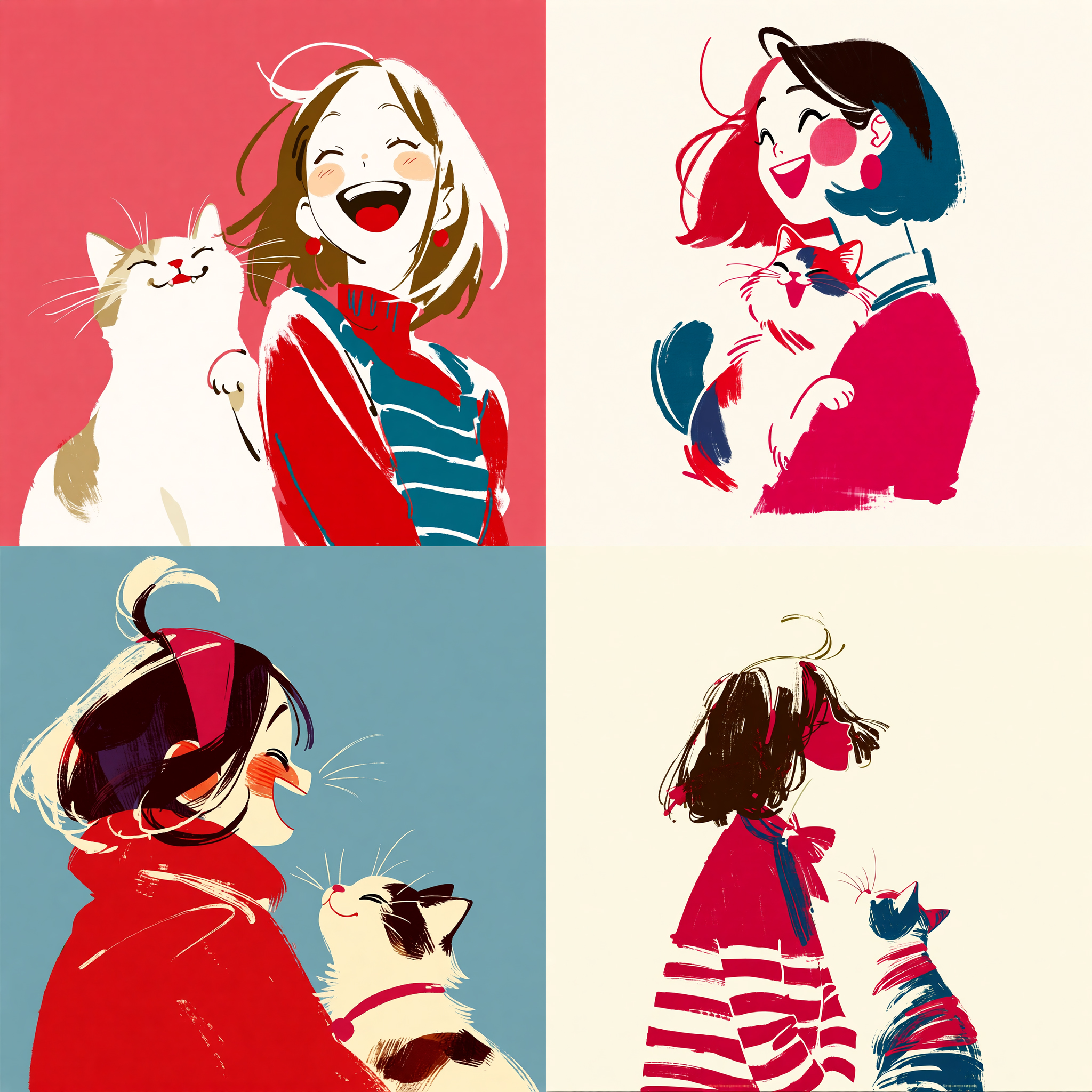 プロンプト1girl with a cat --ar 1:1 --sref 3323562529 --niji 7