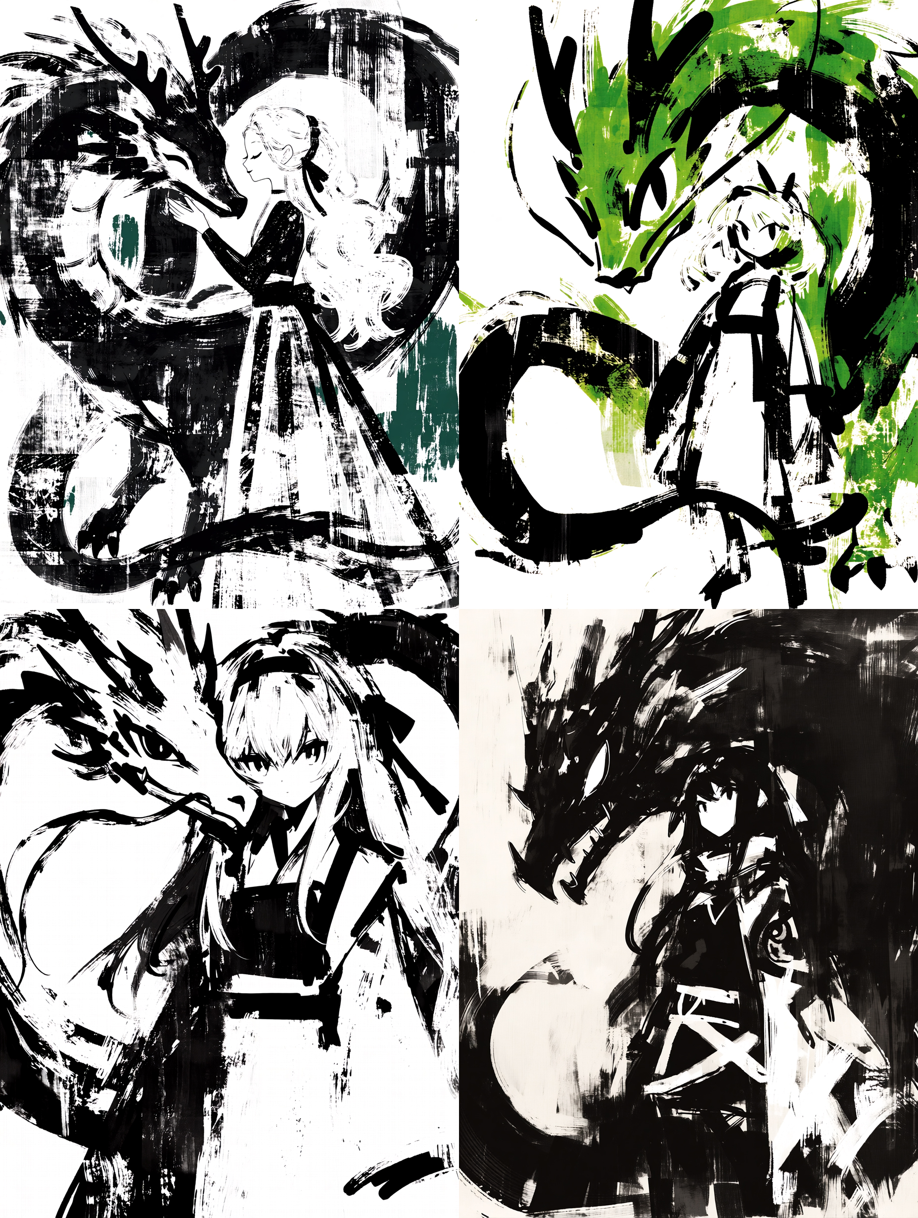 –sref 3744247587 2026 2/01 画像 データ sref --sref 3744247587 content_copy スタイルの分類油絵 スタイルの雰囲気躍動感, かっこいい, モノクロ, 絵画, モダン, シンプル 背景背景なし, 背景あり(模様や抽象画) アウトラインあり 出やすい色■ 黒, □ 白プロンプト1girl with a dragon --sref 3744247587 --niji 7 バージョンnijijourney v7 特徴 かなり荒々しくラフな筆遣いのスタイル。 モノクロの筆系srefではあるが、特に和風や中華風になりやすいというわけではない。 水墨画というよりは、現代アート系の油絵に近い。 「sref 3744247587 」の他の画像 おなじ番号の投稿はまだありません。 [PR] 油絵 躍動感 かっこいい モノクロ 絵画 モダン シンプル よかったらシェアしてね! URLをコピーしました! --sref 2398115224 --sref 4095131043 このSrefの投稿者 桜木ハル 緻密で個性的な絵柄が好き。スタイルの特徴が見やすいように、シンプルなプロンプトを心掛けます。chichi-puiにて作品公開中! この著者の記事一覧へ 関連スタイル –sref 3809327612 –sref 3284507765 –sref 2354 –sref 304508816 –sref 148678930 –sref 3562529829 –sref 3379271226 –sref 1050014412 閉じる