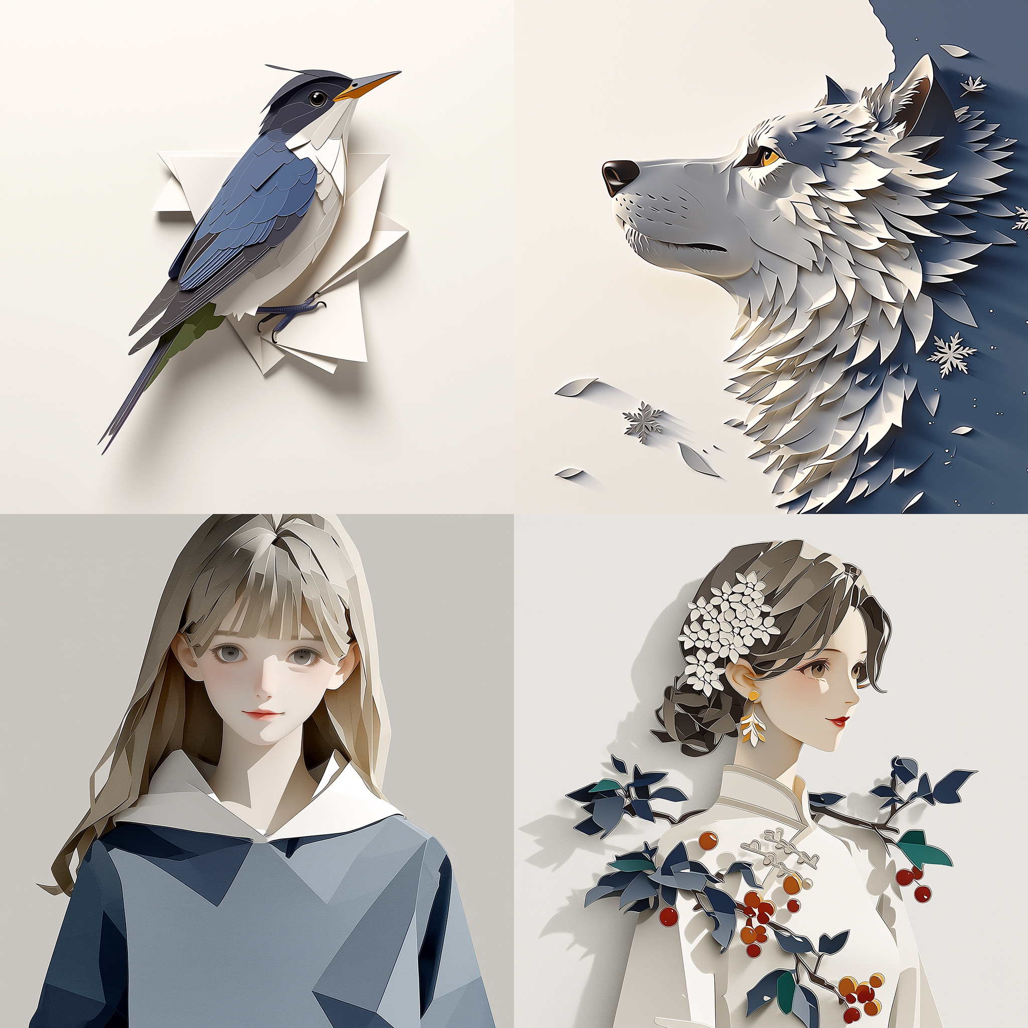 切り絵や折り紙のような表現が特徴の、シックなフラットスタイル。