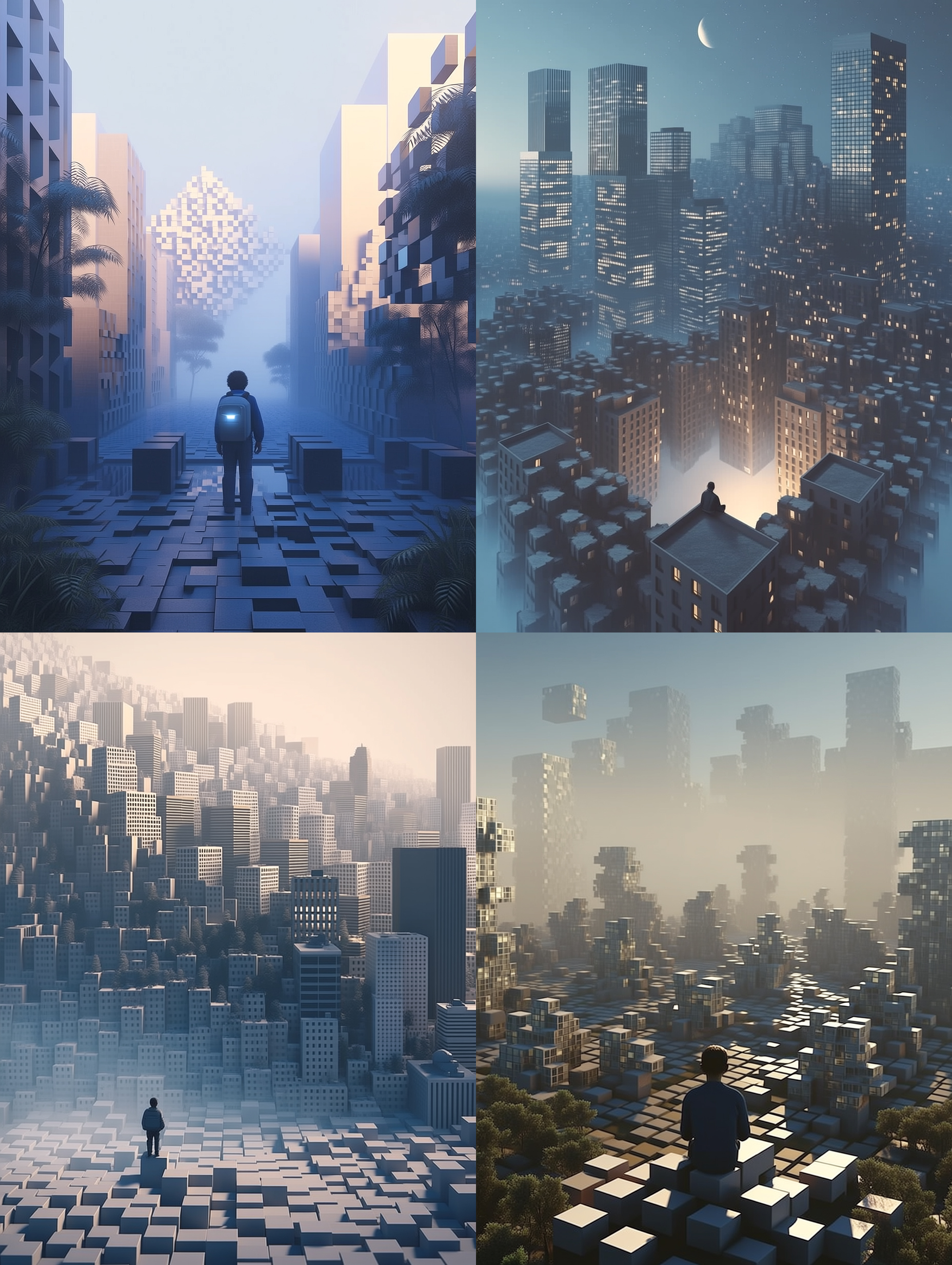 キューブで構成された風景が広がる、壮大な3Dスタイル。